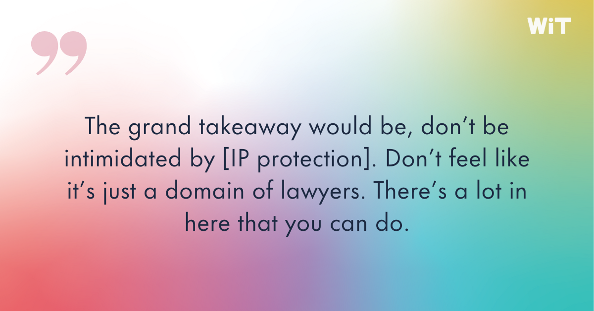 There is no such thing as perfect protection. That’s why a layered approach works best. Assess what you have or what you're creating and then really think about all aspects of intellectual property and how you can use them as a whole, in a strategic manner as your business evolves.